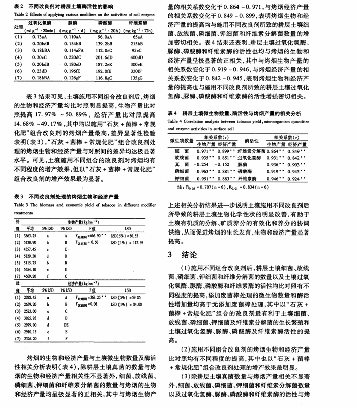 不同土壤改良劑對(duì)土壤生化性質(zhì)與烤煙產(chǎn)量的影響