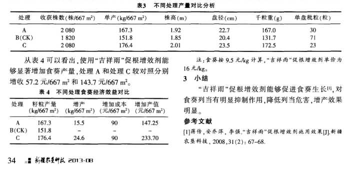 《新疆農墾科技》2013年第8期 新型微生物菌劑“吉祥雨”在食葵上的應用效果
