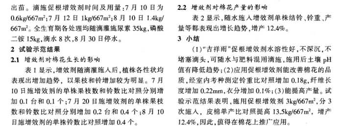 《新疆農(nóng)墾科技》2007年第2期 “吉祥雨”滴灌促根增效劑在棉花上的應(yīng)用