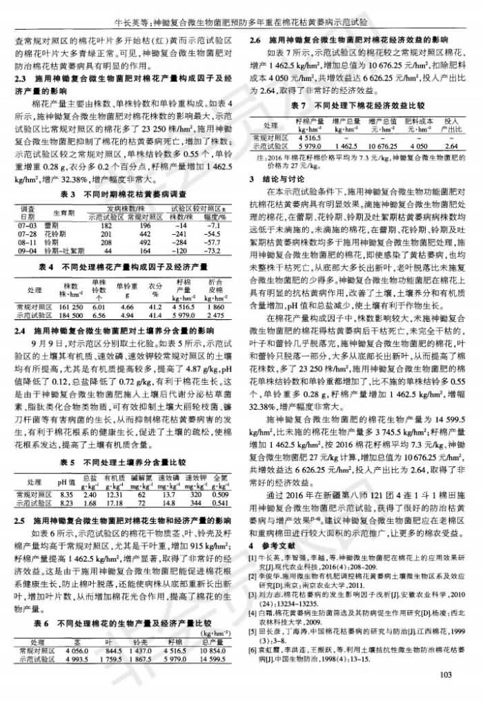 神鋤復(fù)合微 生物菌肥預(yù)防多年重茬棉花枯黃萎病 示范試驗(yàn)