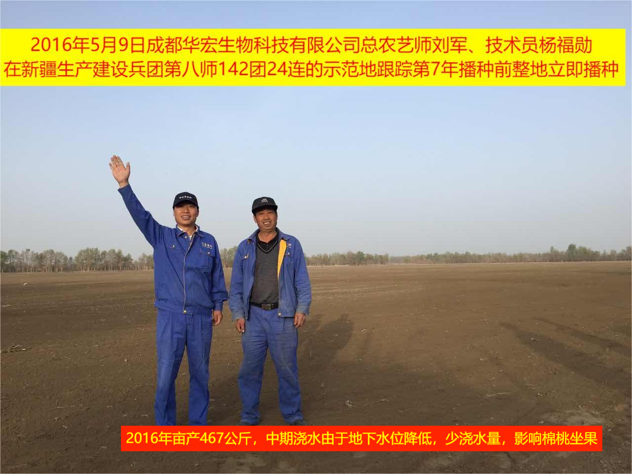 新疆阿克蘇地區(qū)溫宿縣古勒阿瓦提鄉(xiāng)600畝采用華宏方案當(dāng)年實(shí)現(xiàn)280公斤,第二年400公斤,第三年達(dá)到560公斤