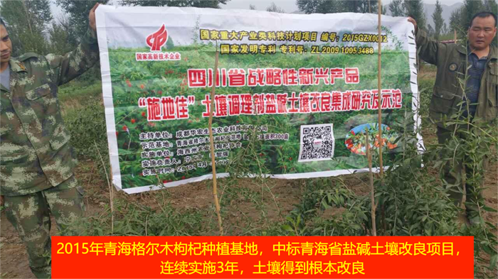2015年青海格爾木枸杞種植基地,中標(biāo)青海省鹽堿土壤改良項目連續(xù)實(shí)施3年,土壤得到根本改良