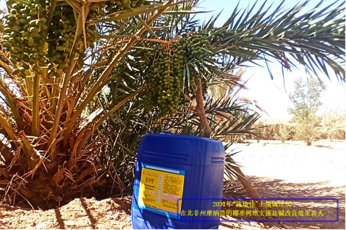 2021年使用土壤改良劑和苦咸水淡化技術(shù)后,每棵椰棗樹年用水量從600升降低至200升,枯樹復(fù)蘇