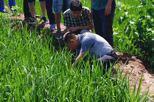 圖3:公司員工親自到稻田察看超級(jí)稻分蘗情況