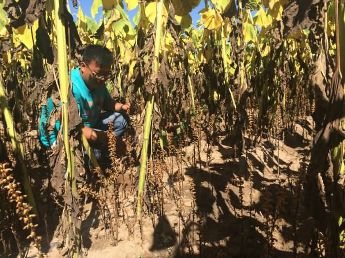 圖1:內(nèi)蒙古五原縣種植大戶的葵花列當(dāng)危害嚴(yán)重