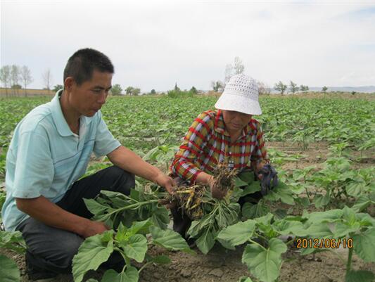 2012年,新疆阿勒泰地區(qū)科技特派員周琴視察“吉祥雨”復合微生物菌劑防治葵花列當圖 2014-02-15 華宏生物 2012年,新疆阿勒泰地區(qū)科技特派員周琴 視察“吉祥雨”復合微生物菌劑防治葵花列當圖 圖片編輯:陽光